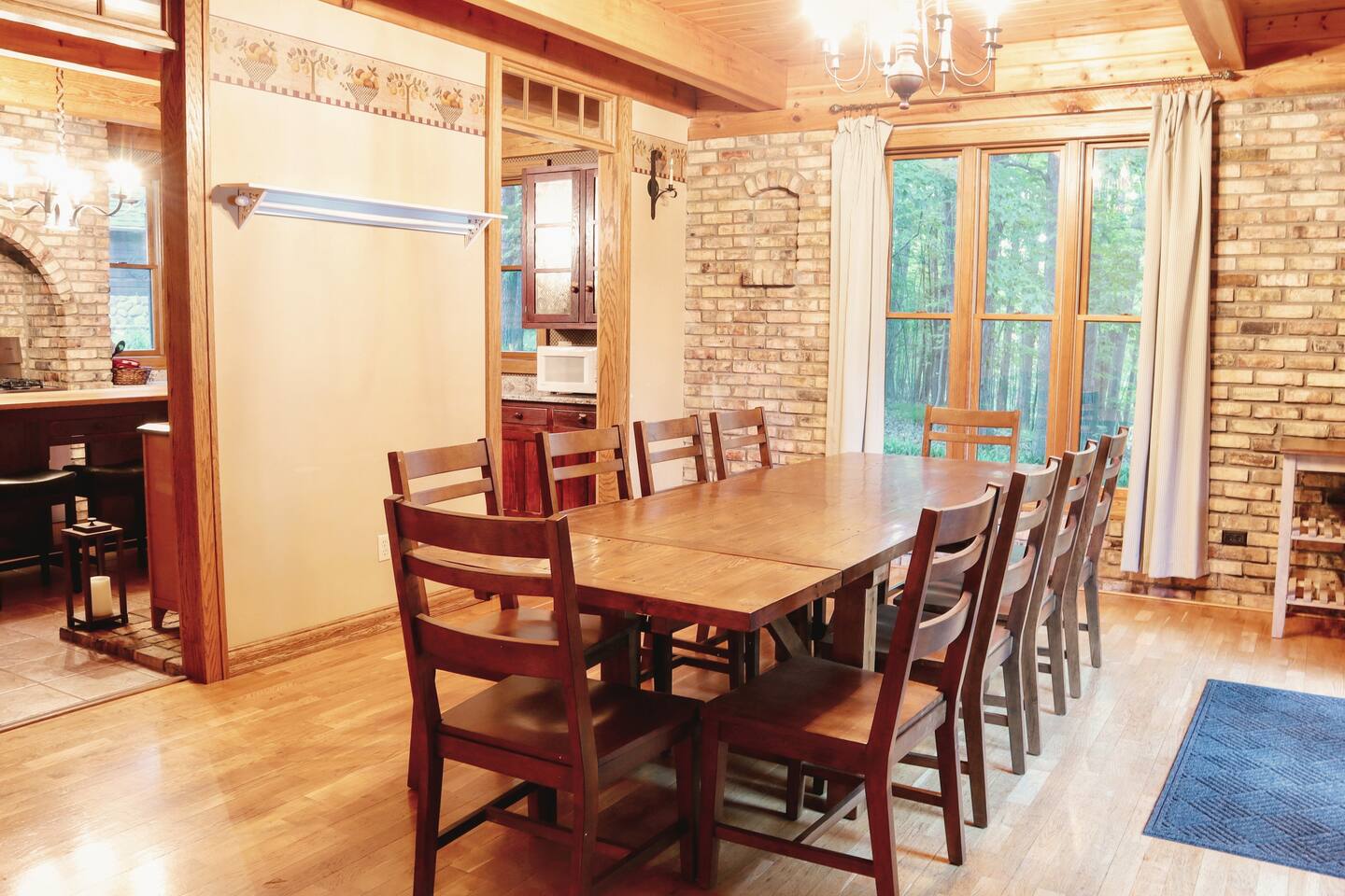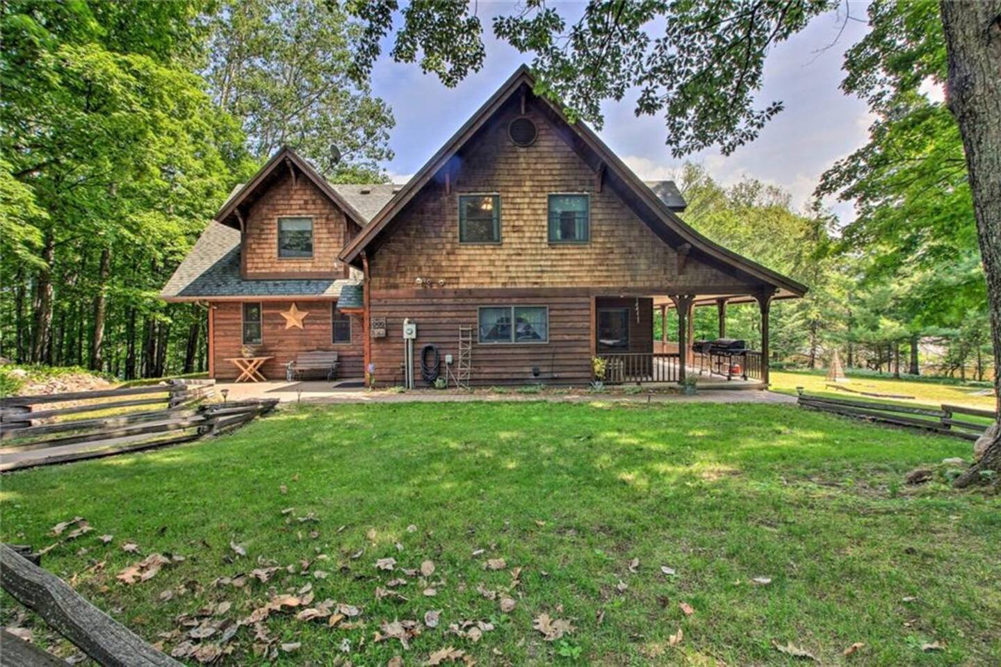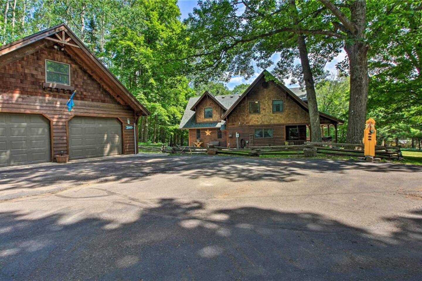 ★ Lakeside Bliss at Your Dowling Lake Lodge ★ Discover the outdoor allure of Dowling Lakefront Lodge, a serene waterfront retreat. This property features a lush, lakefront yard perfect for relaxation and activities. A spacious wraparound deck and an outdoor dining area offer stunning lake views. For grilling enthusiasts, a gas or charcoal grill is ready for your BBQs. Evenings shine with a fire pit surrounded by cozy Adirondack chairs. The private boat dock, along with 2 kayaks, a canoe, and a paddle boat, invites you to enjoy lake adventures. This outdoor oasis is ideal for making lasting memories by the water. Outdoor Highlights: • Watercraft Inclusions: 2 kayaks, a canoe, and a paddle boat for lake exploration. • Lush Lakefront Yard: Perfect for relaxation and group activities. • Wraparound Deck: Offers panoramic views for an immersive nature experience. • Outdoor Dining Area: Ideal for al fresco meals with a scenic backdrop. • Gas/Charcoal Grill: Catering to all your BBQ needs. • Fire Pit with Adirondack Chairs: Ideal for cozy evenings under the stars. • Private Boat Dock: Direct access for boating and water activities. • Pontoon Boat and Mobile Sauna Rental: Available as an add-on services from our amazing partners. ★ Cozy Elegance: Inside Your Lakeside Getaway ★ Step into the heart of your lakeside home, where every corner exudes comfort and style! The spacious living area invites you to unwind, with plush seating perfect for enjoying the serene lake views. A chef's-style kitchen awaits your culinary adventures, fully equipped with modern appliances and a welcoming island countertop. Gather around the large dining table for memorable meals, overlooking the tranquil waters. For quieter moments, the library in the main floor bedroom offers a peaceful retreat with an array of books and games, ensuring relaxation and entertainment for everyone. Gathering Space Highlights: • Inviting Living Area: Comfortable seating with picturesque views. • Gourmet Kitchen: Fully equipped for culinary delights. • Spacious Dining: Large table with stunning lake views. • Wood-Burning Fireplace: Great for those colder days. • At-Home Library: A quiet nook with books and games. • Modern Amenities: Smart TVs, free WiFi, and central A/C for comfort. • Children's items: pack n' play and high chair. • Laundry Convenience: In-house washer and dryer. ★ Tranquil Slumber: Bedrooms Tailored for Relaxation ★ Discover the tranquil sanctuaries of our lakeside home, thoughtfully designed for rest and relaxation. Each of the six bedrooms offers its unique charm, ensuring comfort for every guest. From the luxurious king bed in the master suite to the cozy bunk arrangements perfect for younger guests, these rooms cater to a diverse range of preferences. The master suite also features a whirlpool tub, adding an extra touch of luxury. With ceiling fans, walk-in closets, and serene décor, these bedrooms are more than just a place to sleep; they're a retreat for rejuvenation. Bedroom Highlights: • Bedroom 1 (Upstairs): A serene retreat with a king bed, ceiling fan, and a walk-in closet that can optionally house toddler beds, perfect for families. • Bedroom 2 (Upstairs): Offers flexible sleeping arrangements with a single over full bunk bed and two additional single beds, all complemented by a walk-in closet. • Bedroom 3 (Upstairs): Ideal for groups, featuring two single over single trundles and two extra single beds, along with a spacious walk-in closet. • Bedroom 4 (Upstairs): A cozy space with a full bed, a desk for work or study, a ceiling fan, a walk-in closet, and calming lake views. • Bedroom 5 (Upstairs): A luxurious suite with a queen bed, ceiling fan, walk-in closet, an en-suite bathroom with a whirlpool tub, lake views, and a cozy sitting area with two chairs and an end table. • Bedroom 6 (Upstairs): Nestled within Bedroom 5, this intimate space features a full bed, offering a private and cozy sleeping arrangement. • Main Floor Bedroom: Conveniently located, this room includes a full bed, positioned close to the half bath, and is equipped with a fan for added comfort. ★ Ultimate Fun Zone: The Game Room Experience ★ Step into the game room of your lakeside home, a dynamic playground designed for endless entertainment! This garage-converted haven is the perfect escape for fun-seekers of all ages. Challenge friends and family to a game of pool, engage in exhilarating foosball matches, or simply relax and watch TV from the comfort of the bar table. This space is more than a game room; it's a hub of laughter, competition, and unforgettable moments. Game Room Highlights: • Pool Table: For classic billiards fun. • Foosball Table: Fast-paced and exciting. • Relaxing TV Area: With a bar table for snacks and drinks. • Perfect for All Ages: Entertainment options for everyone. This game room is designed to add an extra layer of enjoyment to your stay, ensuring that every moment at the property is filled with joy and entertainment. ★ Dowling Lake Escape: Your Gateway to Nature and City Life ★ Nestled on the tranquil shores of Dowling Lake, our property offers a perfect blend of lakeside serenity and access to vibrant city life! Just 25 minutes south of Superior, WI, and 40 minutes from Duluth, MN, you're ideally positioned to enjoy both natural beauty and urban attractions. Duluth, a premier destination city, provides a plethora of activities, from cultural experiences to dining and shopping. The property's location on Dowling Lake means direct access to water activities and a peaceful retreat from the bustling city life. Nearby Points of Interest: • Duluth's Attractions: Explore museums, shops, and restaurants. • Superior, WI: Just a short drive for additional cultural and recreational activities. • Lake Activities: Boating, fishing, and relaxation right at your doorstep. • Nature Trails: Ideal for hiking and exploring the scenic outdoors. Enjoy 