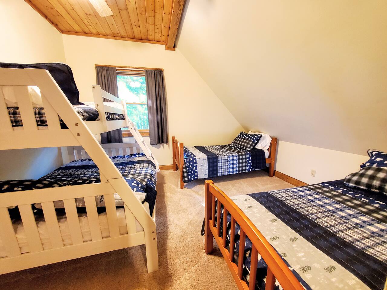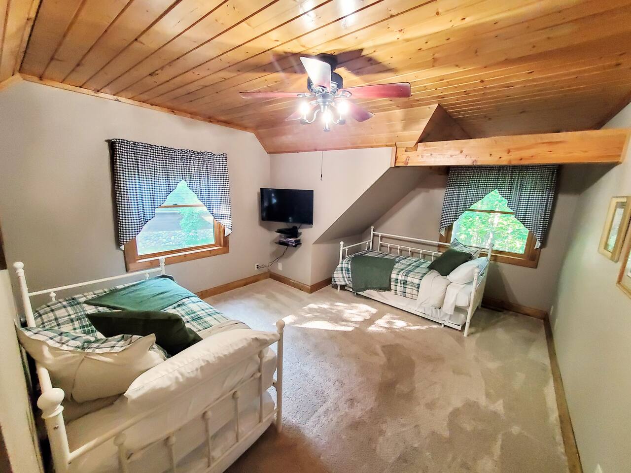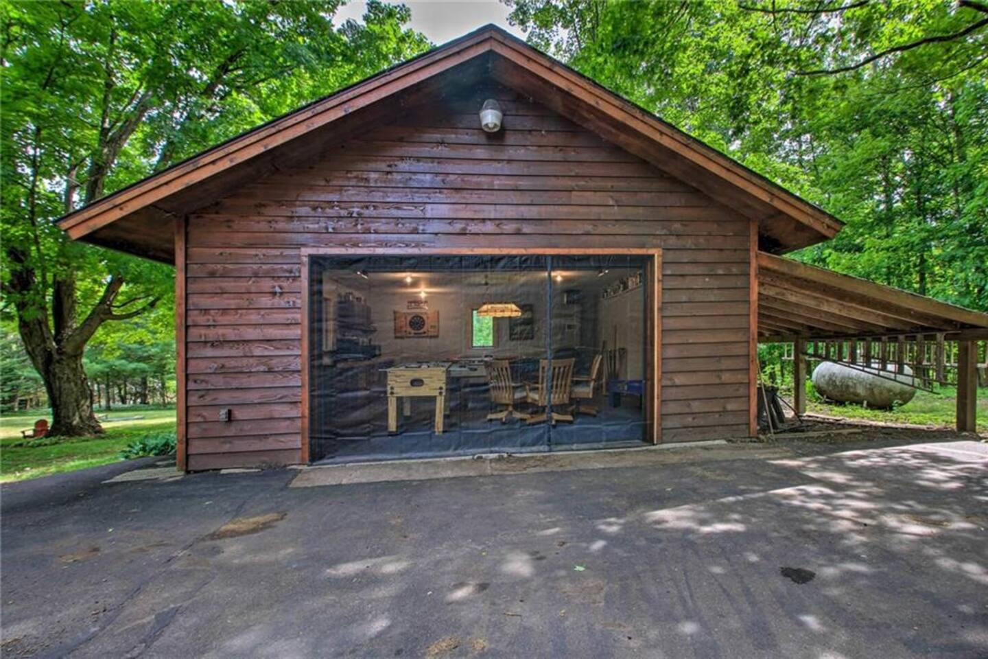 ★ Lakeside Bliss at Your Dowling Lake Lodge ★ Discover the outdoor allure of Dowling Lakefront Lodge, a serene waterfront retreat. This property features a lush, lakefront yard perfect for relaxation and activities. A spacious wraparound deck and an outdoor dining area offer stunning lake views. For grilling enthusiasts, a gas or charcoal grill is ready for your BBQs. Evenings shine with a fire pit surrounded by cozy Adirondack chairs. The private boat dock, along with 2 kayaks, a canoe, and a paddle boat, invites you to enjoy lake adventures. This outdoor oasis is ideal for making lasting memories by the water. Outdoor Highlights: • Watercraft Inclusions: 2 kayaks, a canoe, and a paddle boat for lake exploration. • Lush Lakefront Yard: Perfect for relaxation and group activities. • Wraparound Deck: Offers panoramic views for an immersive nature experience. • Outdoor Dining Area: Ideal for al fresco meals with a scenic backdrop. • Gas/Charcoal Grill: Catering to all your BBQ needs. • Fire Pit with Adirondack Chairs: Ideal for cozy evenings under the stars. • Private Boat Dock: Direct access for boating and water activities. • Pontoon Boat and Mobile Sauna Rental: Available as an add-on services from our amazing partners. ★ Cozy Elegance: Inside Your Lakeside Getaway ★ Step into the heart of your lakeside home, where every corner exudes comfort and style! The spacious living area invites you to unwind, with plush seating perfect for enjoying the serene lake views. A chef's-style kitchen awaits your culinary adventures, fully equipped with modern appliances and a welcoming island countertop. Gather around the large dining table for memorable meals, overlooking the tranquil waters. For quieter moments, the library in the main floor bedroom offers a peaceful retreat with an array of books and games, ensuring relaxation and entertainment for everyone. Gathering Space Highlights: • Inviting Living Area: Comfortable seating with picturesque views. • Gourmet Kitchen: Fully equipped for culinary delights. • Spacious Dining: Large table with stunning lake views. • Wood-Burning Fireplace: Great for those colder days. • At-Home Library: A quiet nook with books and games. • Modern Amenities: Smart TVs, free WiFi, and central A/C for comfort. • Children's items: pack n' play and high chair. • Laundry Convenience: In-house washer and dryer. ★ Tranquil Slumber: Bedrooms Tailored for Relaxation ★ Discover the tranquil sanctuaries of our lakeside home, thoughtfully designed for rest and relaxation. Each of the six bedrooms offers its unique charm, ensuring comfort for every guest. From the luxurious king bed in the master suite to the cozy bunk arrangements perfect for younger guests, these rooms cater to a diverse range of preferences. The master suite also features a whirlpool tub, adding an extra touch of luxury. With ceiling fans, walk-in closets, and serene décor, these bedrooms are more than just a place to sleep; they're a retreat for rejuvenation. Bedroom Highlights: • Bedroom 1 (Upstairs): A serene retreat with a king bed, ceiling fan, and a walk-in closet that can optionally house toddler beds, perfect for families. • Bedroom 2 (Upstairs): Offers flexible sleeping arrangements with a single over full bunk bed and two additional single beds, all complemented by a walk-in closet. • Bedroom 3 (Upstairs): Ideal for groups, featuring two single over single trundles and two extra single beds, along with a spacious walk-in closet. • Bedroom 4 (Upstairs): A cozy space with a full bed, a desk for work or study, a ceiling fan, a walk-in closet, and calming lake views. • Bedroom 5 (Upstairs): A luxurious suite with a queen bed, ceiling fan, walk-in closet, an en-suite bathroom with a whirlpool tub, lake views, and a cozy sitting area with two chairs and an end table. • Bedroom 6 (Upstairs): Nestled within Bedroom 5, this intimate space features a full bed, offering a private and cozy sleeping arrangement. • Main Floor Bedroom: Conveniently located, this room includes a full bed, positioned close to the half bath, and is equipped with a fan for added comfort. ★ Ultimate Fun Zone: The Game Room Experience ★ Step into the game room of your lakeside home, a dynamic playground designed for endless entertainment! This garage-converted haven is the perfect escape for fun-seekers of all ages. Challenge friends and family to a game of pool, engage in exhilarating foosball matches, or simply relax and watch TV from the comfort of the bar table. This space is more than a game room; it's a hub of laughter, competition, and unforgettable moments. Game Room Highlights: • Pool Table: For classic billiards fun. • Foosball Table: Fast-paced and exciting. • Relaxing TV Area: With a bar table for snacks and drinks. • Perfect for All Ages: Entertainment options for everyone. This game room is designed to add an extra layer of enjoyment to your stay, ensuring that every moment at the property is filled with joy and entertainment. ★ Dowling Lake Escape: Your Gateway to Nature and City Life ★ Nestled on the tranquil shores of Dowling Lake, our property offers a perfect blend of lakeside serenity and access to vibrant city life! Just 25 minutes south of Superior, WI, and 40 minutes from Duluth, MN, you're ideally positioned to enjoy both natural beauty and urban attractions. Duluth, a premier destination city, provides a plethora of activities, from cultural experiences to dining and shopping. The property's location on Dowling Lake means direct access to water activities and a peaceful retreat from the bustling city life. Nearby Points of Interest: • Duluth's Attractions: Explore museums, shops, and restaurants. • Superior, WI: Just a short drive for additional cultural and recreational activities. • Lake Activities: Boating, fishing, and relaxation right at your doorstep. • Nature Trails: Ideal for hiking and exploring the scenic outdoors. Enjoy 