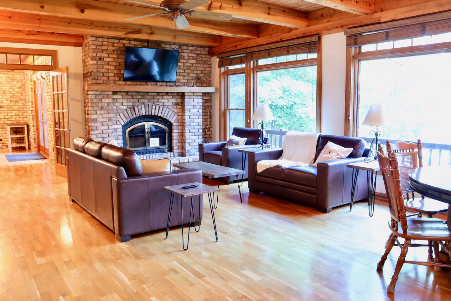 Step into a lakeside paradise at our Dowling Lake Retreat, a haven for both outdoor rec & relaxation enthusiasts. Revel in aquatic adventures with our kayaks & canoe, right off your private dock or unwind by the firepit. This spacious abode sleeps 15, offering stunning lake views & a chef's kitchen for culinary delights. • Private Dock, Lake Access • Kayaks, Canoe, Paddle Boat • Fireplace, Firepit, Outdoor Games • Game Room, Board Games & Library • Pontoon & Mobile Sauna Rentals